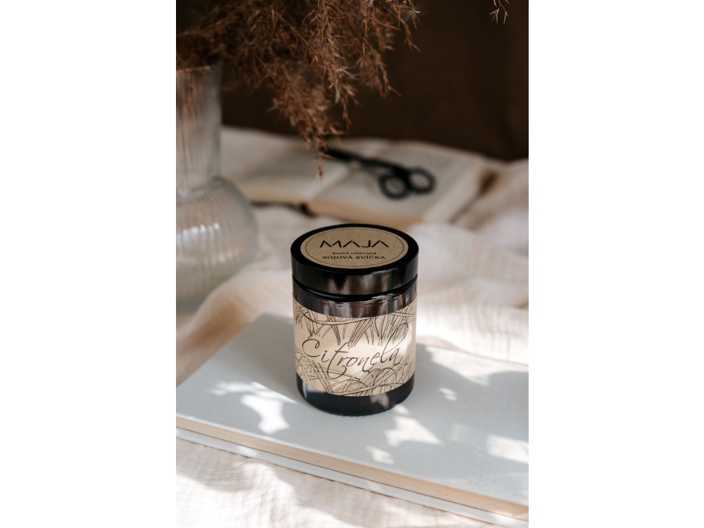 Sójová svíčka s vůní citronely v hnědém skle