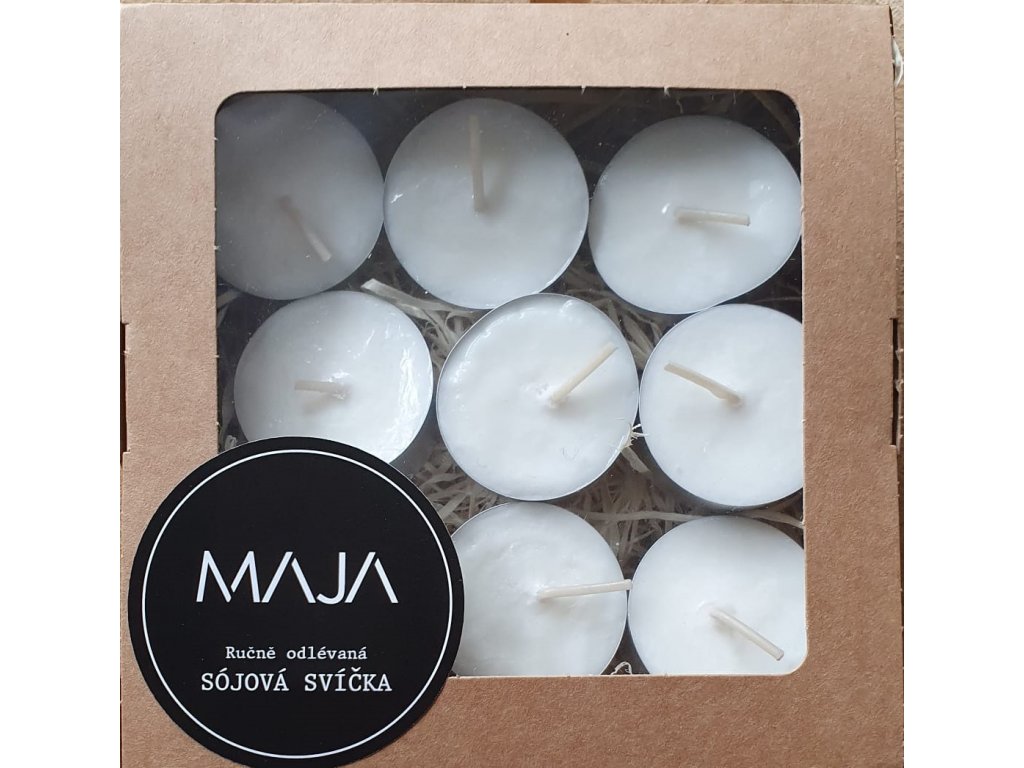 Sada 9 kusů sójových čajových svíček v dárkové krabičce. Doba hoření jedné sójové čajové svíčky je 3-4 hodiny. Svíčky jsou bez parfemace. Vhodné jako dárek.