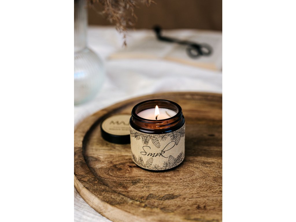 Sójová svíčka s vůní smrku v hnědém skle