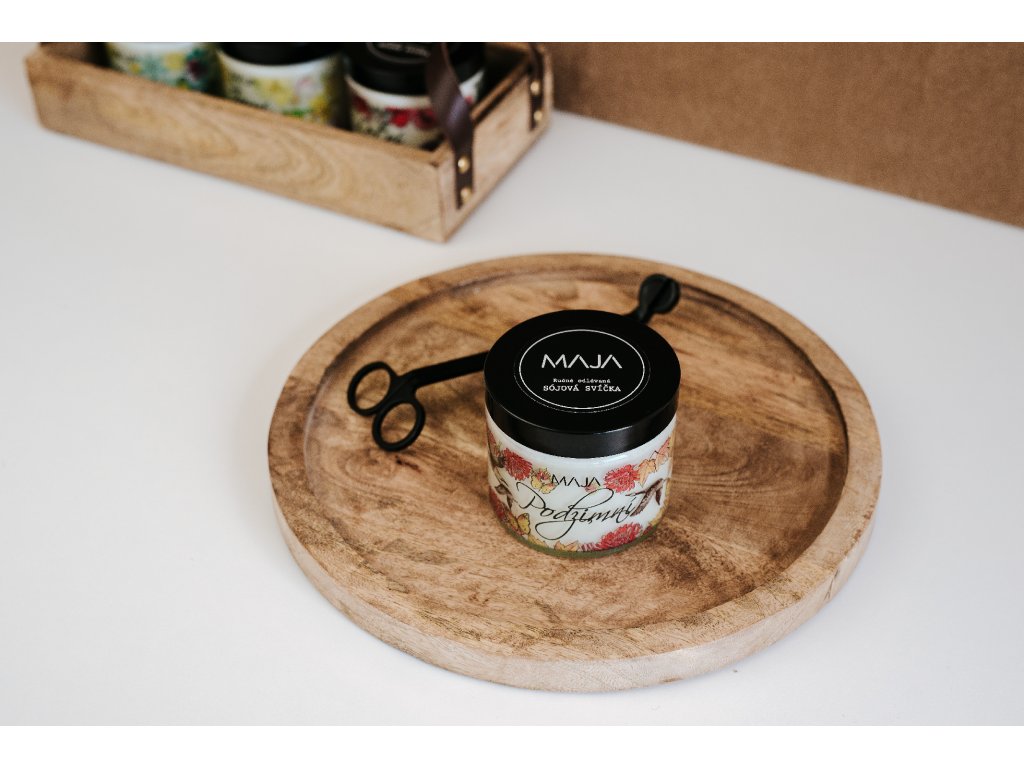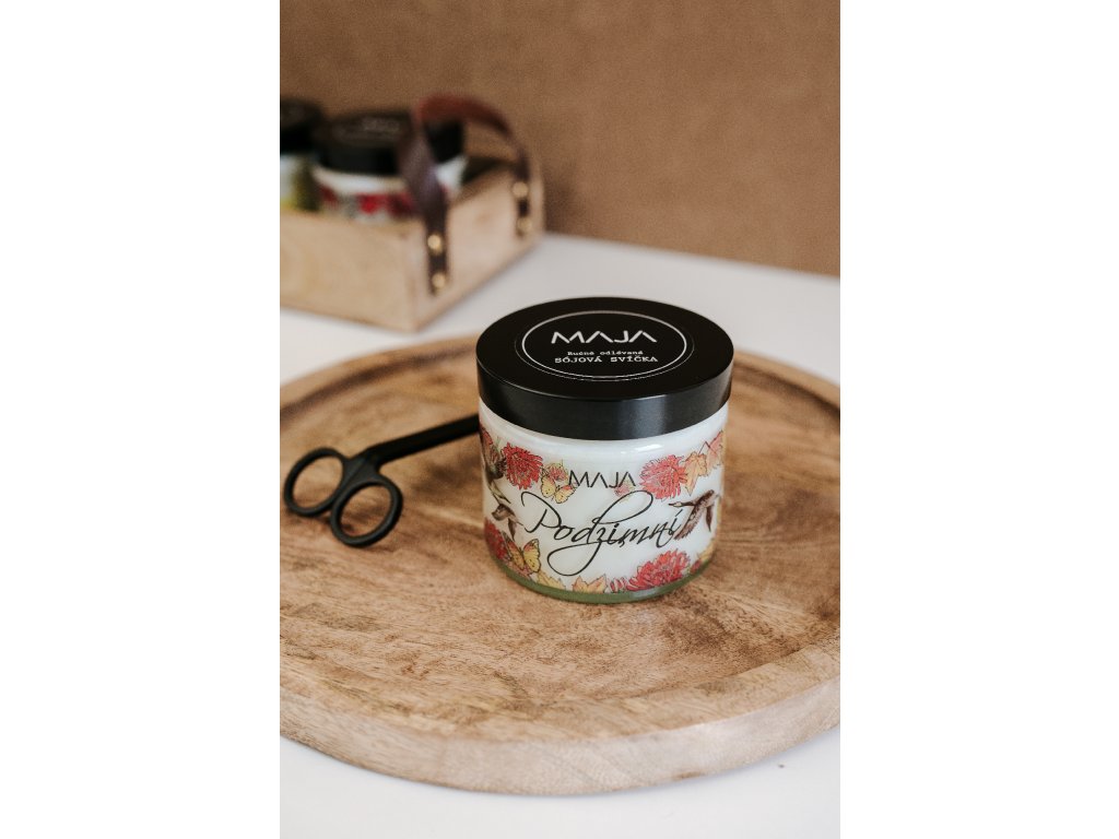Přivítejte podzim s naší sójovou svíčkou Podzimní z nové kolekce inspirované přirodou. Svíčku zdobí ručně malovaná transparentní autorská etiketa, která při hoření svíčky krásně vynikne. Je inovativním doplňkem do podzimní dekorace vašeho domova. Vůně je lehce sladší s esenciálním olejem bergamot.