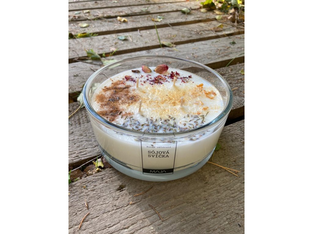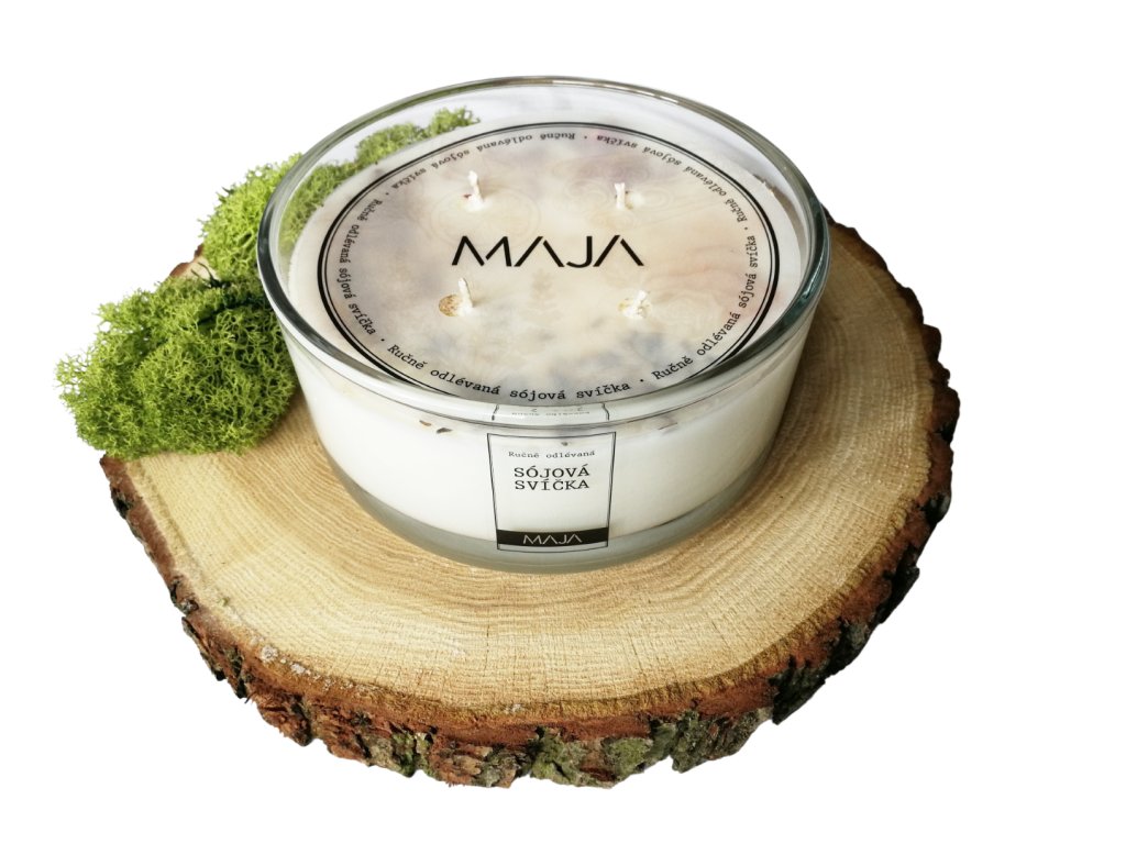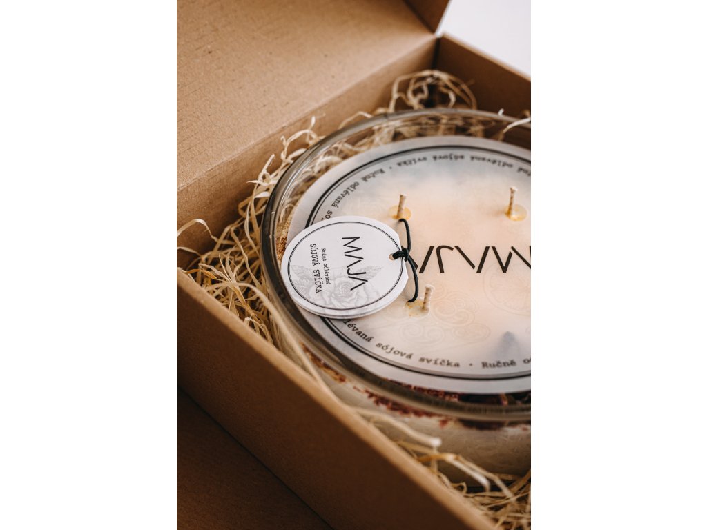 Obsahuje až 800 gramů sójového vosku a její dokonalé minimalistické zdobení jí dodává výjimečný vzhled. Zlatá mica -