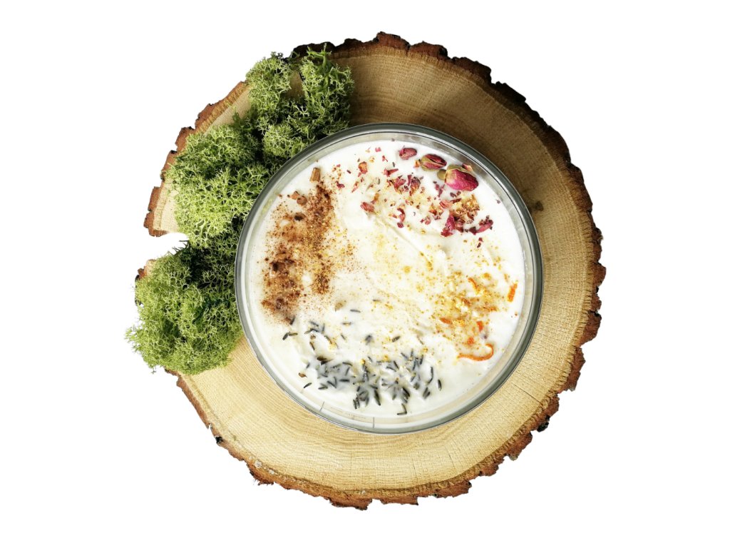 přírodní slídový prach se při hoření krásně třpytí a proplouvá rozpuštěným voskem. Esenciální olej ylang-ylang v